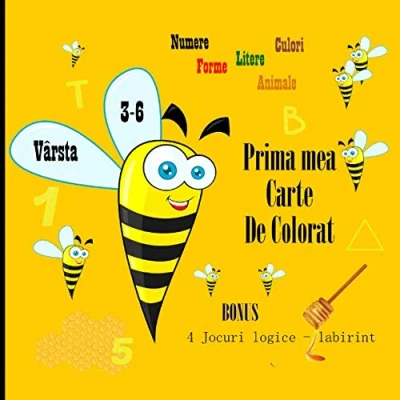 Prima mea carte de colorat: Numere, Forme, Litere, Culori si Animale cu Imagini Corespondente Varsta 3 6 ani