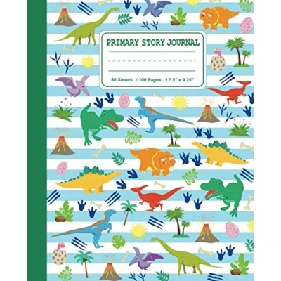 Primary Story Journal: Dinosaur Draw and Write Composition Notebook For Kids: Grades K 2 Creative Journal Handwriting Sketching