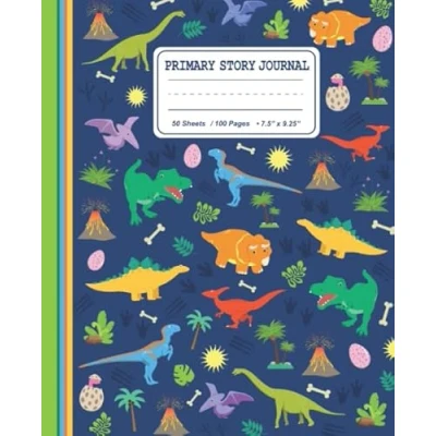 Primary Story Journal: Dinosaur Draw and Write Composition Notebook For Kids: K 2 Journal Handwriting Sketching: Dotted Midline