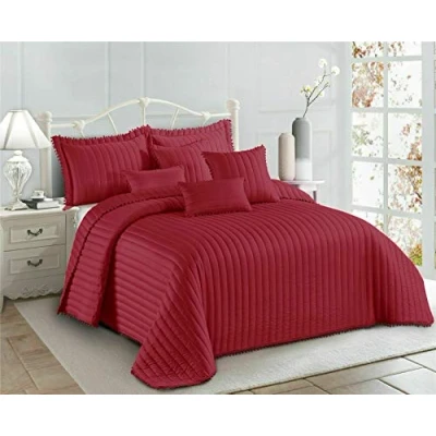 PACKAGE CONTAIN: Our Pom Pom Quilted Bedspread Set King 3 Piece (1 x Bedspread + 2 Pillow Shams). King Bedspread is 250 cm wide and 250 cm Long and Pillow covers are standard size with an extra 5 cm decorative border. CLASSIC DESIGN: The pom pom quilt set features a classic stripe pattern with pom pom at the borders. Solid color bedding set with cute pom pom decor quilt bed throw, suitable for all style room decoration for all seasons. Give your bedroom a fresh modern look with this pom-pom bedspread set. MULTI-PURPOSE USAGE ALL SEASON: The bed coverlet is made of 100% microfiber and filled with polyester. This lightweight bedspread is suitable for all seasons. You can use it as a bed cover if you like to sleep with your pet or keep warm in the cold season. At the same time, in the warm season, you can use it as a quilt. AMAZING COLORS: Our bedspreads are available in several fantastic colors. Now doesn't that make for the perfect gift or complement for your home? EASY CARE: The quilt set is easy to clean and does not fade easily. Machine wash cold, tumble dry, no bleach required. Remains soft after multiple washes