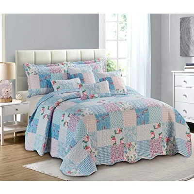 BEDSPREAD SET INCLUDE: Printed Quilted Bedspread Set Single (1 x Bedspread + 1 Pillow Sham). A Single Bedspread is 180 cm wide and 240 cm Long and Pillow covers are 50cm wide and 75 cm long with an extra 5 cm decorative border. QUALITY & MATERIAL: 100% original microfiber polyester stuffed with high-quality Holo-fiber 200 GSM. Made of the best quality materials soft to the touch and more comfortable and breathable. Enhanced by intricate stitching that adds texture and depth to the piece. FLORAL PATCHWORK DESIGN: Traditional Printed Patchwork is vibrantly mixed color floral pattern patchwork design quilted bedspreads. Features a vintage-inspired patchwork design that combines rustic and classic elements. VERSATILE USAGE: This is an all-season bedspread it is lightweight and works well with just a sheet in the hot weather, also adds a bit of extra warmth in the winter with a duvet or you can use this as a decorative purpose adding luxury to your bedroom. The lightweight fabric is also perfect for kids or your pet, helps you sleep well at night, and is a great sleeping companion. BEDSPREAD CARE: Our bedspreads are machine washable at low and can be tumble dried on low and the fantastic materials don't tend to wrinkle too much, you can even iron them on low heat.
