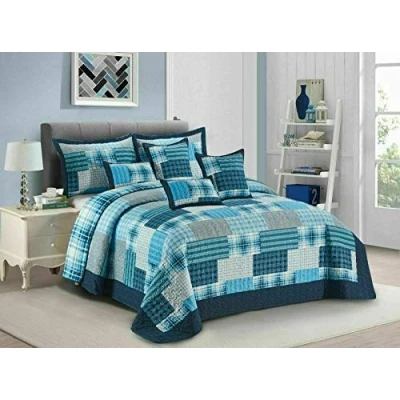 PACKAGE INCLUDES: Our Printed Quilted Bedspread Set Super King (1 x Bedspread + 2 Pillow Shams). A Super King Bedspread is 255 cm wide and 275 cm Long and Pillow covers are 50 cm wide and 75 cm long with an extra 5 cm decorative border. MATERIAL COMPOSITION: Our bedspreads are made of the best quality materials. The outer layer is 100% microfiber polyester with 200 GSM filling. Exceptional materials to make our product last longer and make your bed more comfortable. CHECK DESIGNS: Traditional Printed Patchwork Bedspread are available in fantastic check designs patchwork with three different colors. Classic colors and patterns from the calm check with a mix of stripes checks and patchworks. VERSATILE USAGE: This is an all-season bedspread it is lightweight and works well with just a sheet in the hot weather, also adds a bit of extra warmth in the winter with a duvet or you can use this as a decorative purpose adding luxury to your bedroom. EASY CARE: Our bedspreads are machine washable up to 40 degrees Celsius, can be tumble dried on low and the fantastic materials don't tend to wrinkle too much, you can even iron them on low heat.