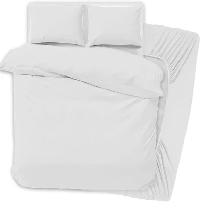 PRIME LINENS 4 Pcs Duvet Cover Set with Matching Fitted Sheet 30 cm Deep Soft Breathable Premium Microfibre Quilt Bedding (White, Super King)