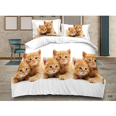 Prime Linens 4 Piece 3D Design Duvet Quilt Cover Complete Bedding Set Fitted Sheet with 2 Pillow Cases (3D Cats - 335, Double)