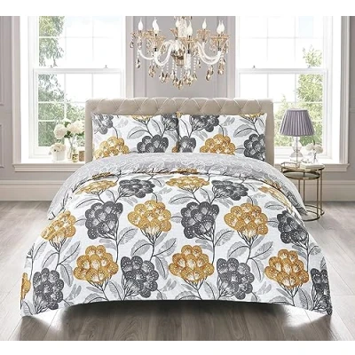 Prime Linens Duvet Cover Set 4 Pcs Polyester Cotton Quilt Bedding With Pillow Cases and Extra Fitted Sheet Included (Bloom Ochre, King)