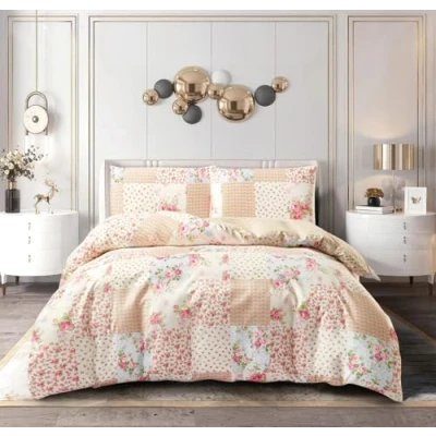 PRIME LINENS Duvet Cover Set 4 Pcs Polyester Cotton Quilt Bedding With Pillow Cases and Extra Fitted Sheet Included (Meadow, Double)