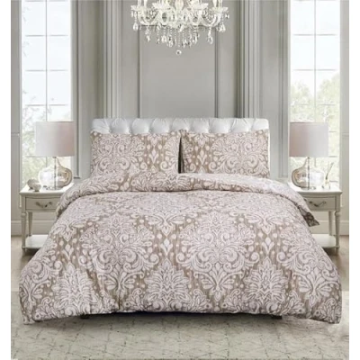Prime Linens Duvet Cover Set 4 Pcs Polyester Cotton Quilt Bedding With Pillow Cases and Extra Fitted Sheet Included (Royal Damask Beige, Double)