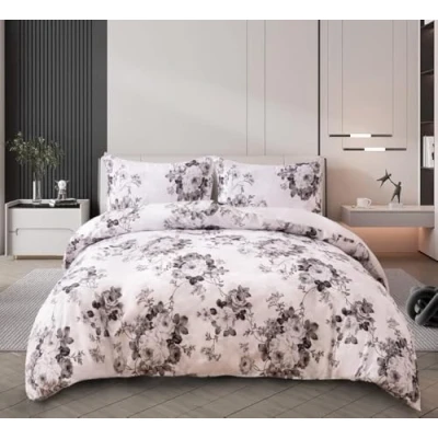 Prime Linens Duvet Cover Set 4 Pcs Polyester Cotton Quilt Bedding With Pillow Cases and Extra Fitted Sheet Included (Vintage Floral Grey, King)