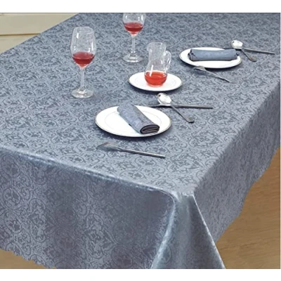 Prime Linens Home Decorative Classic Damask Printed Jacquard Tablecloth Rectangle Round Runner Napkin Table Cover Cloth Protector for Kitchen Picnic (Silver, 70" x 108")