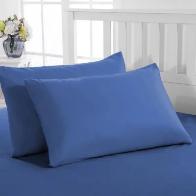 PRIME LINENS Pillow Cases 2 Pack Standard Size Polyester Cotton Cover with Envelop Closure Wrinkle Fade Resistant Pillowcases Machine Washable (Mid Blue, 50 x 75 Cm of 2)
