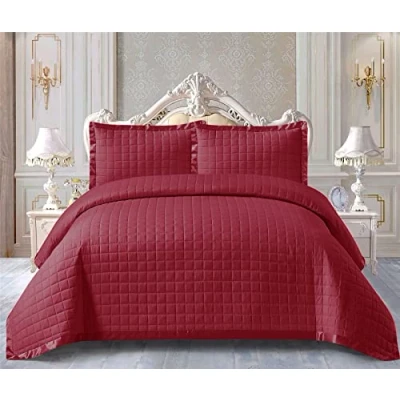 Prime Linens Quilted Bedspread Bed Throw 3 Piece Bedding Set Includes Comforter and 2 Pillow Cases Bedroom Décor Embossed Quilt Osca (Burgundy, King)