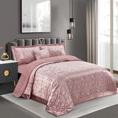 Prime Linens Quilted Jacquard Velvet Infinity Bedspread Set Throw Bedding Includes Soft Bed Comforter with 2 Pillow Shams Machine Wash (Pink, King)