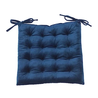 Prime Linens Velvet Chair Seat Pads with Ties Strap 16 Stitch Ultra Soft Comfortable Pad Adjustable Cushions for Kitchen Dinning Living Room (Pack Of 2, Dark Blue)