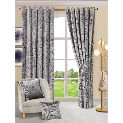 PRIME LINENS Velvet Curtains Luxury Eyelet Ring Top Plush for Living Room, Bed Home & Office Window Pair Panel with 2 Tie Backs. (Silver, W 90" x L 108")