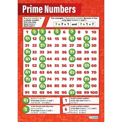 Prime Numbers Maths Charts Laminated Gloss Paper measuring 594 mm x 850 (A1) Math for the Classroom Education Posters by Daydream