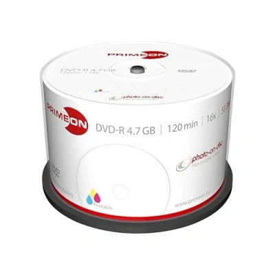 Format: DVD-R (photo-on-disc) Surface: Inkjet printable Write speed: 16x Storage capacity: 4.7GB Contents per pack: 50 pieces on the spindle