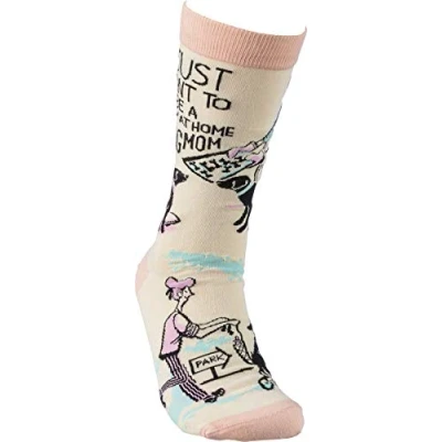PRIMITIVES BY KATHY SOCKS: Fun novelty socks made from a comfy and long-wearing blend of cotton, nylon and spandex ADULT SIZE: One size fits most DOG MOM DESIGN features a "I Just Want To Be A Stay At Home Dog Mom" sentiment and full color design FOR THE DOG LOVER: Search for pooch-themed box signs, coffee cups, dish towels, and more from Primitives by Kathy SAY IT WITH SASS: Hilarious, sarcastic or heartwarming - Primitives by Kathy has just the right gift to tell them how you really feel