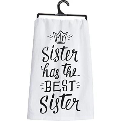 Primitives by Kathy cheerful dish towel adds sass to your kitchen 28-Inch square; made from strong, high quality cotton for softness and durability Reads: my Sister has The Best Sister A funny gift for your Sister just to let her know you are Thinking of her Look for all of Primitives by Kathy for inspirational, fun, sarcastic, and heart-warming gifts and home decor