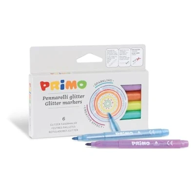 COLORS - The 6 glitter colored markers have bright, bright and intense colors, to create creative designs and special decorations. The markers are packaged in a convenient box. QUALITY - The Primo paint kit is of excellent quality: the tip is rounded to facilitate drawing. In addition, the glitter markers are suitable for all types of paper. CREATIVITY - Ideal for creating decorations and light points to your designs. Try them on a black card and then place it under a light source and you will see what a luminous effect! USE - Just place the glitter marker with the tip down and wait a few moments before drawing. SAFETY - The colors comply with the safety requirements of toys, therefore suitable for use in total safety. Suitable for children over 3 years old.