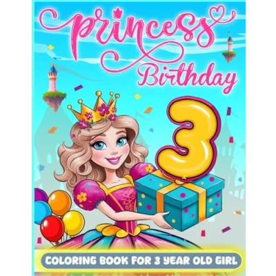 Princess Birthday For 3 Year Old Girl: 3rd Girl Gift Idea, Coloring Book Toddlers