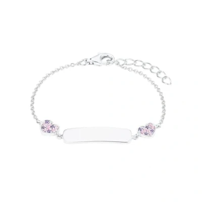 Adjustable girls bracelet (12+2 cm) in shiny sterling silver 925 The engravable plaque is great for adding a personal touch, such as a name, initial or date Sparkling zirconia in lilac and pink make girls' eyes shine