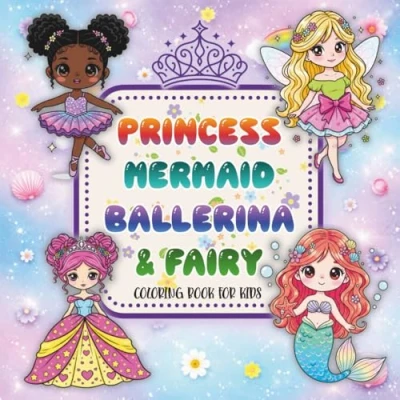 Princess, Mermaid, Ballerina & Fairy Coloring Book for Kids Ages 4 8: Cute Kawaii, Easy to Color Designs Relax, Imagine, and Create Magical Stories.