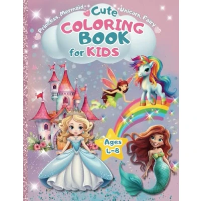 Princess, Mermaid, Unicorn and Fairy Cute Coloring Book for Kids: Ages 4 8 55 Magical Pages of Creative Fun Perfect Gift Girls