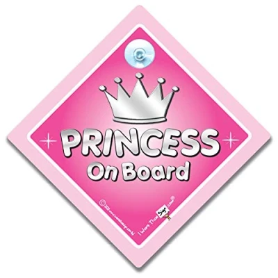 Princess On Board Car Sign, Baby Sign with Suction Cup, in