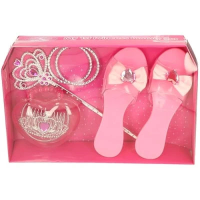 COMPLETE SET: Includes a sparkly tiara, magical wand, decorative crown, pretty pink shoes with bows, and fashionable bangles for the perfect princess experience DRESS-UP ACCESSORIES: Perfect collection of royal accessories that encourages imaginative play and lets little ones feel like a real princess ELEGANT DESIGN: Beautiful pink colour scheme with silver accents and decorative elements adds a magical touch to playtime GIFT-READY: Comes packaged in an attractive pink box with starry design, making it an ideal present for young aspiring princesses QUALITY MATERIALS: Crafted with child-friendly materials and attention to detail, featuring comfortable shoes and lightweight accessories, Manufacturer: Atoz