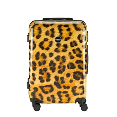 Princess Traveller Animal Print Leopard, Yellow, Mittel Reisekoffer, Rigid Trolley with Swivel Wheels