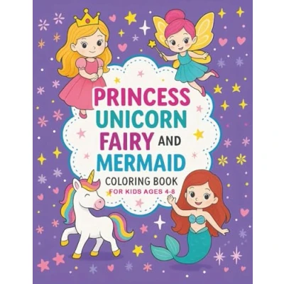 Princess, Unicorn, Fairy, and Mermaid: Cute Coloring Book For Kids Ages 4 8