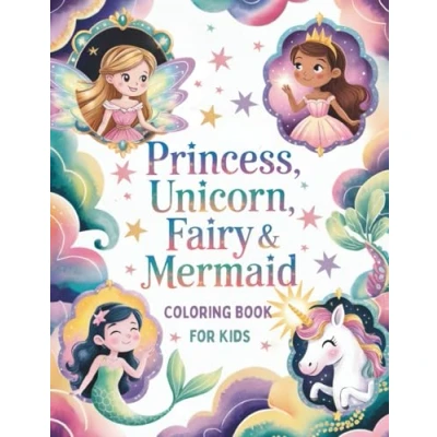 Princess, Unicorn, Fairy & Mermaid Coloring Book for Kids: 50 Magical Pages Kids Ages 4 8