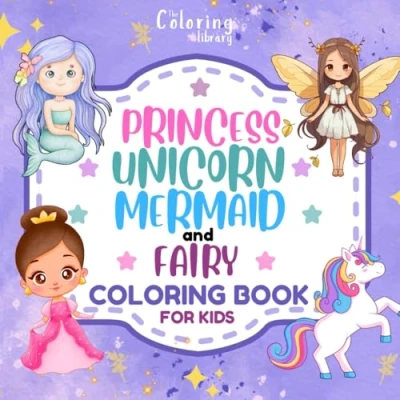 Princess, Unicorn, Mermaid, and Fairy: Cute Coloring Book For Kids Ages 4 8