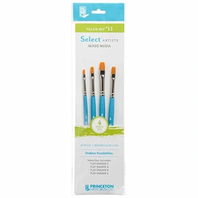PRINCETON’S BEST-SELLING BRUSH - Whether you're painting with acrylic, oil or watercolour, Select Artiste brushes are perfect for all of your arts and crafts needs. Now, you can explore traditional and avant-garde techniques on nearly any surface. BEAUTIFULLY DESIGNED - Satin-finished, jewel-tone blue handles and silver ferrules make our brushes as beautiful to look at as they are to paint with MULTIPLE FILAMENT TYPES - Filament types vary based on the paintbrush style. Our bristles are thoughtfully designed using a variety of synthetic hair THE MOST COMPLETE ASSORTMENT - Select Artiste brushes are offered in 29 distinct shapes and 108 individual styles, including flats, shaders, rounds, fan, daggers, filberts, washes, liners and more. Contains: Flat Shader 2, Flat Shader 4, Flat Shader 6, Flat Shader 8