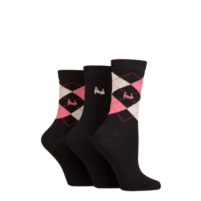 Pringle Ladies Argyle Cotton Socks Pack of 3 Black/Pinks 4 8
