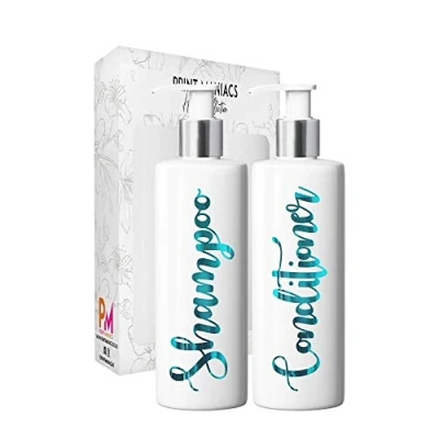 Print Maniacs 2 Set Mrs Hinch Inspired White Personalised Dispenser Pump Bottles Shampoo Conditioner (Teal)
