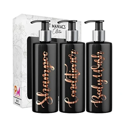 Print Maniacs 3 Set Mrs Hinch Inspired Black Personalised Dispenser Pump Bottles Shampoo Conditioner Body Wash (Copper)