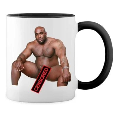 Print Maniacs Barry Wood Sitting on Bed Censored White Coffee Mug with Black Infill & Handle