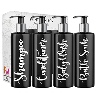 Print Maniacs Black Mrs Hinch Inspired Personalised 500ml Pump Bottles Bathroom Lotion Kitchen Set Shampoo Conditioner (Shower Gel Set) (White)