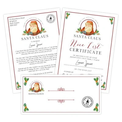 ersonalised Certificate: Customise this A4 letter with the child's name to recognise their good behaviour and kindness throughout the year. High-Quality Material: Printed on high quality textured paper for a premium look and feel. FestiveChristmas Santa Design: Features a jolly Santa Claus illustration along with an official 'Santa Approved' seal. Thoughtful Gift: A delightful present to motivate children and celebrate their accomplishments during the Christmas season. Dimensions: Measures 21 cm x 29 cm (AA size) for a convenient display or framing option. Letter is A4 size printed on high quality textured paper Includes Envelope