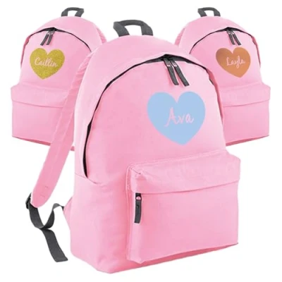 Print Maniacs Personalised Backpack School Large 18L Kids Travel Rucksack Junior Shoulder Collage Back To Girls Boys P.E Laptop Book Bag Heart (Pink)