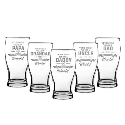 š„ćMEMORABLE FATHER'S DAY GIFTSćTO THE WORLD YOU ARE A DAD, BUT TO OUR FAMILY YOU ARE THE WORLD! The vibrant white ink of the Beer Stein glass expresses your gratefulness and love for your father, the Beer Stein glass will impress your father š„ćCrystal and Classy GlassćCrafted with high-quality and lead-free crystal glass, the hand-blown craftsmanship brings the vintage design of smooth glass rim and heavy base, Lead-free crystal gives maximum clarity and brilliance, sparkle beautifully in the light, elevating a unique drinking experience. š„ćGift PackagingćMeticulously Packaged with an inner liner and gift box to protect this dad Beer Stein glass. Imagine how happy and moved your lover or father will be when they open this elegant gift box. Your family love will last a lifetime. š„ćJumbo Beer Stein Glass ćPerfect 1 Pint capacity to enjoy beers and can also be used as a regular juice or water glass. Firing technology ensures the writing will never fade and dishwasher safe, hand wash is better, to keep the glass in good condition for a long time š„ćBuy with confidencećIf you receive these Beer Glasses, we offer free replacements, customer satisfaction is always our top priority, so if you have any questions when buying glasses, we will provide you with a quick solution, Manufacturer: Print Maniacs