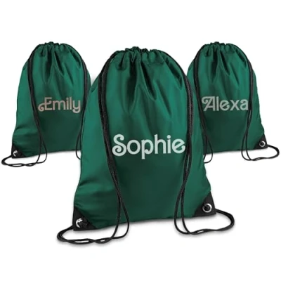 Print Maniacs Personalised Drawstring Bag for Kids Back to School PE Bag, Swim with Name Ideal Boys, Girls, Toddlers,and Primary Students Perfect Bottle Green
