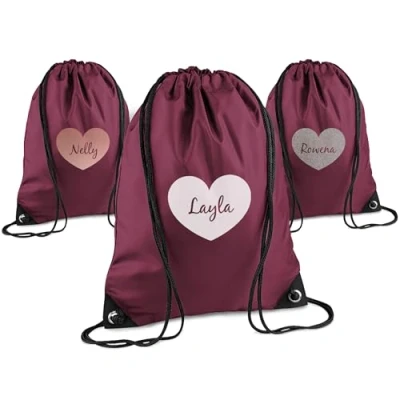 Print Maniacs Personalised Drawstring Bag for Kids Back to School PE Bag, Swim with Name Ideal Boys, Girls, Toddlers,and Primary Students Perfect Burgundy