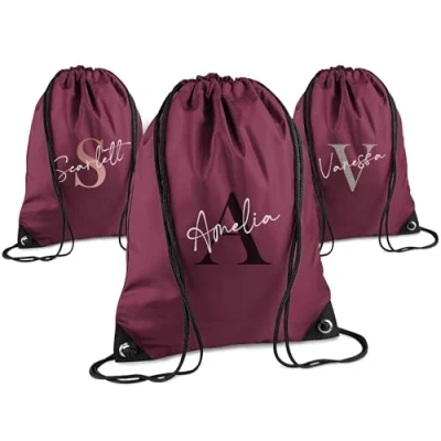 Print Maniacs Personalised Drawstring Bag for Kids Back to School PE Bag, Swim with Name Ideal Boys, Girls, Toddlers,and Primary Students Perfect Burgundy