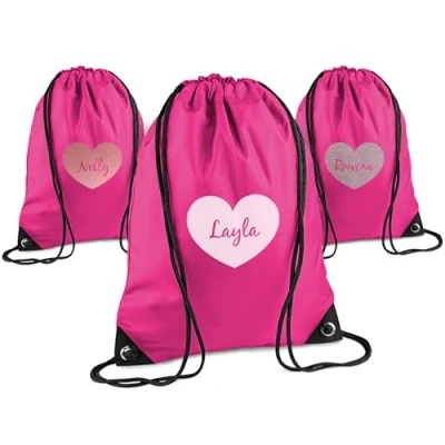 Print Maniacs Personalised Drawstring Bag for Kids Back to School PE Bag, Swim with Name Ideal Boys, Girls, Toddlers,and Primary Students Perfect Fuchsia