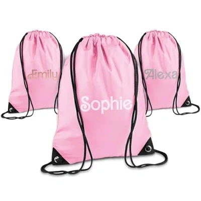 Print Maniacs Personalised Drawstring Bag for Kids Back to School PE Bag, Swim with Name Ideal Boys, Girls, Toddlers,and Primary Students Perfect Pink