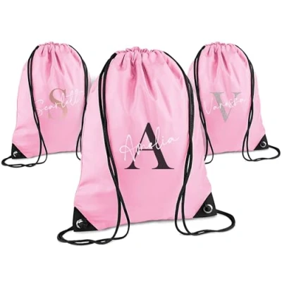 Print Maniacs Personalised Drawstring Bag for Kids Back to School PE Bag, Swim with Name Ideal Boys, Girls, Toddlers,and Primary Students Perfect Pink