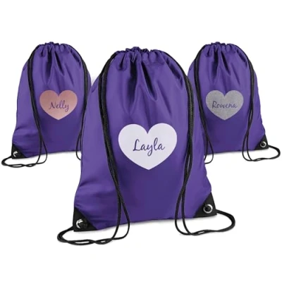 Print Maniacs Personalised Drawstring Bag for Kids Back to School PE Bag, Swim with Name Ideal Boys, Girls, Toddlers,and Primary Students Perfect Purple