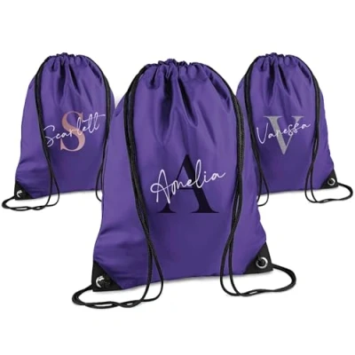 Print Maniacs Personalised Drawstring Bag for Kids Back to School PE Bag, Swim with Name Ideal Boys, Girls, Toddlers,and Primary Students Perfect Purple
